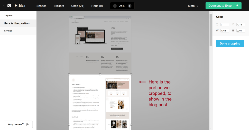 For quick and convenient commenting, cropping, and annotating, webpage designers like Christy also make use of GoFullPage’s Premium Editor. No need to export and import GoFullPage screenshots into other design programs!