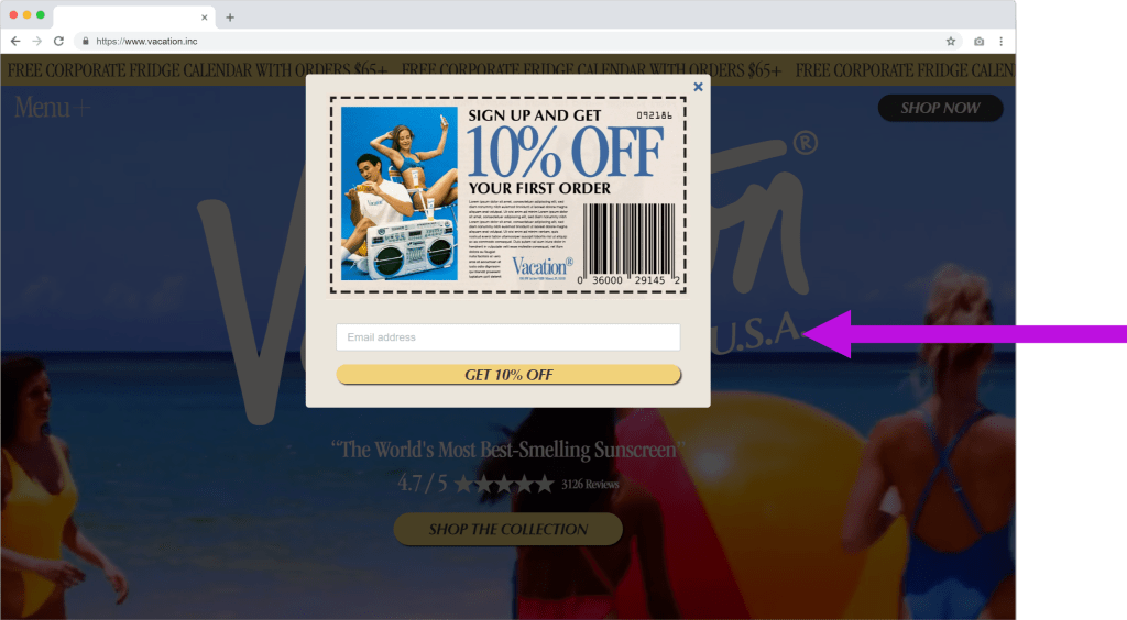 1. Examples of how other e-commerce brands gather email addresses on landing pages: