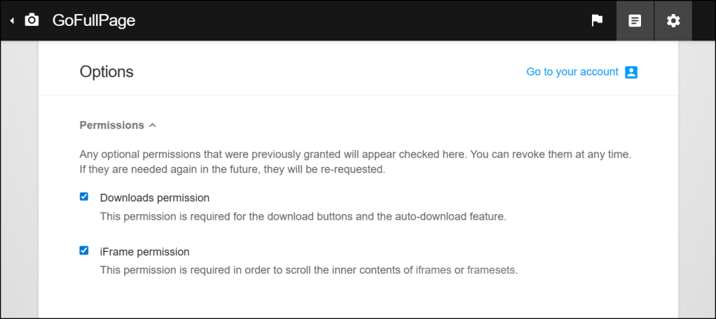 The screenshots live locally within the extension on your browser, but if you want to download them into your local computer files, you might encounter this permission. The downloads permission is necessary to allow GoFullpage to save the screenshots into your downloads folder.